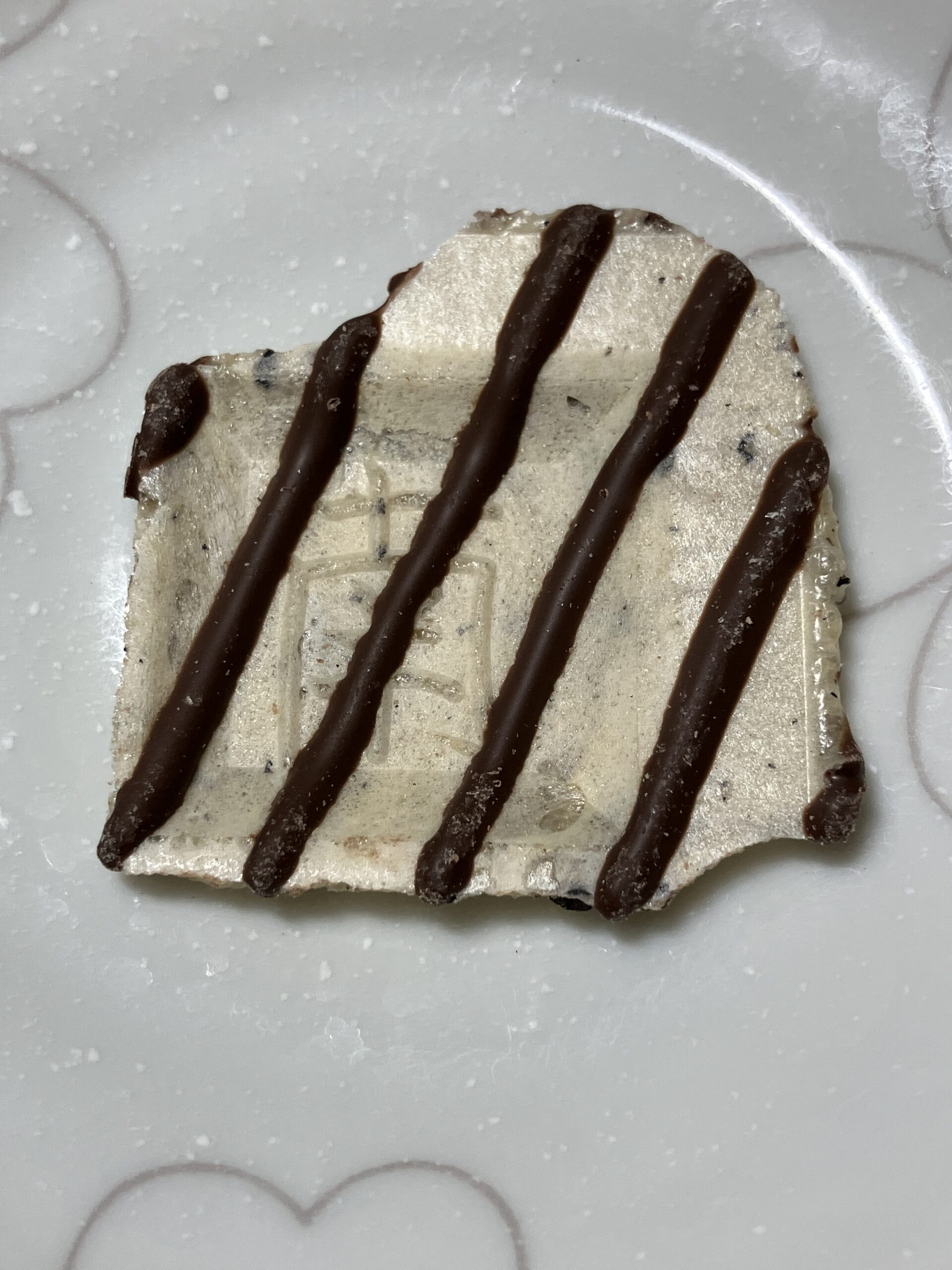 写真の通り、このチョコかけが非常にランダムになっているのでチョコのかかり具合によって味にばらつきが出ます。