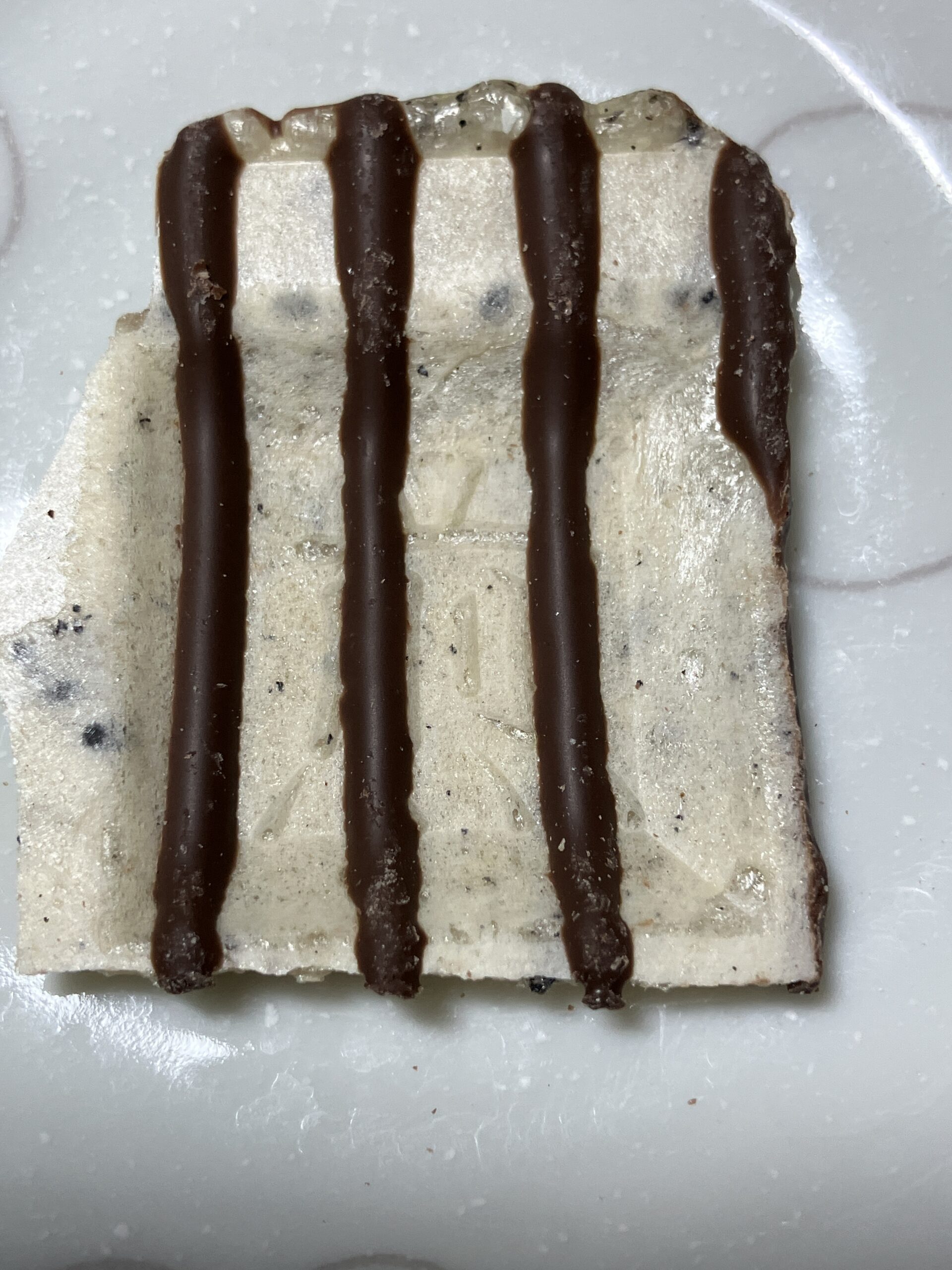 パリパリ感が強いです。特に癖もなく最終的に口の中はミルクチョコ味に落ち着きます。